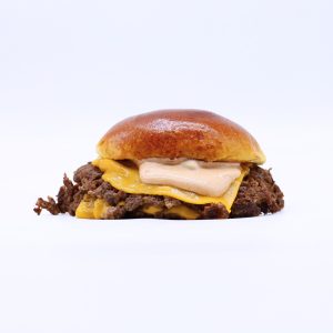 Pan, Salsa queen, Carne aplastada, Queso y Pepinillo